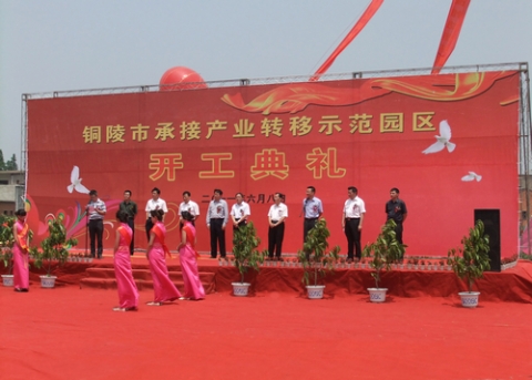 2011年6月8日上午陽(yáng)光和煦、微風(fēng)徐徐,東聯(lián)鄉(xiāng)永太路施工現(xiàn)場(chǎng)花團(tuán)錦簇,彩旗飄揚(yáng)。銅陵市承接產(chǎn)業(yè)轉(zhuǎn)移示范園區(qū)工程建設(shè)開(kāi)工奠基儀式在這里隆重舉行。