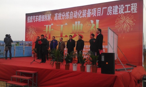 2012年12月10日,銅陵天奇藍(lán)天機(jī)械設(shè)備有限公司彩旗飄揚(yáng),氣球飛舞,氣球下方的“凝心聚力謀行業(yè)發(fā)展 爭(zhēng)創(chuàng)佳績(jī)促企業(yè)跨越”“加強(qiáng)科技合作與交流 走開放型科技發(fā)展之路”“以黨的十八大精神為統(tǒng)領(lǐng) 推進(jìn)企業(yè)跨越發(fā)展 科學(xué)發(fā)展 和諧發(fā)展”“推進(jìn)綠色發(fā)展、循環(huán)發(fā)展、低碳發(fā)展 加強(qiáng)生態(tài)文明建設(shè)”的標(biāo)語,在空中格外醒目。 11點(diǎn)08分,“報(bào)廢汽車精細(xì)拆解、高效分揀自動(dòng)化裝備項(xiàng)目廠房建設(shè)工程”儀式正式開始。儀式由公司總經(jīng)理錢立華先生主持。儀式上天奇藍(lán)天董事長(zhǎng)汪國(guó)春先生作項(xiàng)目介紹并致辭。工程施工單位江西省群力建設(shè)有限公司副總經(jīng)理徐丙洋先生也作了發(fā)言,表示一定按質(zhì)按期完成此項(xiàng)工程。銅陵市經(jīng)濟(jì)技術(shù)開發(fā)區(qū)管委會(huì)主任王毅軍先生也發(fā)表講話,對(duì)項(xiàng)目開工表示祝賀,希望項(xiàng)目建設(shè)各方精心組織、科學(xué)調(diào)配、保質(zhì)保量,完成建設(shè)任務(wù),希望項(xiàng)目盡早建成、投產(chǎn)。 最后,天奇股份創(chuàng)始人黃偉興先生宣布開工令,在陣陣掌聲和轟鳴的禮炮聲中,本次開工慶典儀式圓滿劃上句號(hào)。 “報(bào)廢汽車精細(xì)拆解、高效分揀自動(dòng)化裝備項(xiàng)目廠房建設(shè)工程”是同日開工的“銅陵市長(zhǎng)三角區(qū)域性汽車產(chǎn)品回收利用再制造產(chǎn)業(yè)基地項(xiàng)目”的配套項(xiàng)目。項(xiàng)目的開工是企業(yè)積極響應(yīng)政府大力發(fā)展汽車循環(huán)經(jīng)濟(jì)的號(hào)召,不斷擴(kuò)大生產(chǎn)經(jīng)營(yíng)規(guī)模,加大技術(shù)改造投入,走科技進(jìn)步與創(chuàng)新之路的結(jié)果;更是天奇股份支持地方經(jīng)濟(jì)建設(shè),轉(zhuǎn)變觀念、順勢(shì)而謀之為。