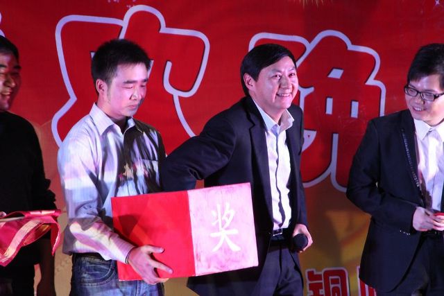 今年,在公司領(lǐng)導(dǎo)的支持下,增發(fā)了50多個幸運獎,大大提高了中獎率,也為新年討個好彩頭。有獎猜猜猜環(huán)節(jié)讓全場達(dá)到一個小高潮,猜歌、猜圖片,猜成語讓場上場下互動起來了,知道答案的觀眾高高地舉起手,一個個都恨不得站桌子上,好讓主持人把話筒遞過來,讓自己說出答案,小孩子們更是感興趣,都跑出席位,來到臺前爭搶機會說答案,他們除了想告訴大家,我聰明,知道答案之外,其實心里惦想著待會能從錢箱里抓出多少錢,醉翁之意不在酒,在閃亮亮的硬幣啊。