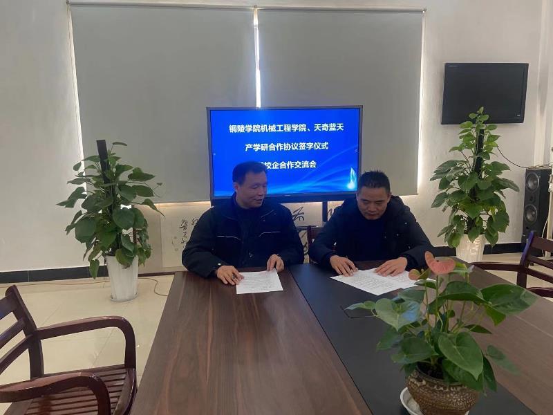 2020年12月15日上午,銅陵學(xué)院機械工程學(xué)院與我公司簽署戰(zhàn)略合作協(xié)議儀式在綜合樓一樓會議室隆重舉行。出席儀式有天奇藍天總經(jīng)理章愛前、財務(wù)部長丁繼剛、技術(shù)總工程師范守廣、技術(shù)部長吳光強、及綜合部部長施樂勤等,銅陵學(xué)院機械工程學(xué)院王涇文院長,夏兆清書記等出席戰(zhàn)略合作協(xié)議簽約儀式。 會上,天奇藍天公司章總代表公司向各位校領(lǐng)導(dǎo)的到來表示熱烈的歡迎,并介紹了我公司生產(chǎn)經(jīng)營情況。他希望校企雙方根據(jù)戰(zhàn)略合作協(xié)議,加快開展實質(zhì)性、規(guī)范化、系統(tǒng)化的合作步伐,通過相互交流,通過產(chǎn)學(xué)研深度融合,實現(xiàn)雙方事業(yè)邁上新臺階。 銅陵學(xué)院機械工程學(xué)院王院長首先代表學(xué)院對天奇藍天公司邀請和支持表示感謝。他在講話中指出,愿意推進與天奇藍天公司的深度合作,開展科產(chǎn)業(yè)的相互合作,共同推進經(jīng)濟社會的發(fā)展。 會后,天奇藍天公司章總和銅陵學(xué)院機械工程學(xué)院王院長簽署了產(chǎn)學(xué)研合作協(xié)議, 本次成功簽約標志著我公司與銅陵學(xué)院機械工程學(xué)院進入深度合作的階段,未來將在產(chǎn)、學(xué)、研等各方面共同創(chuàng)新發(fā)展。 |